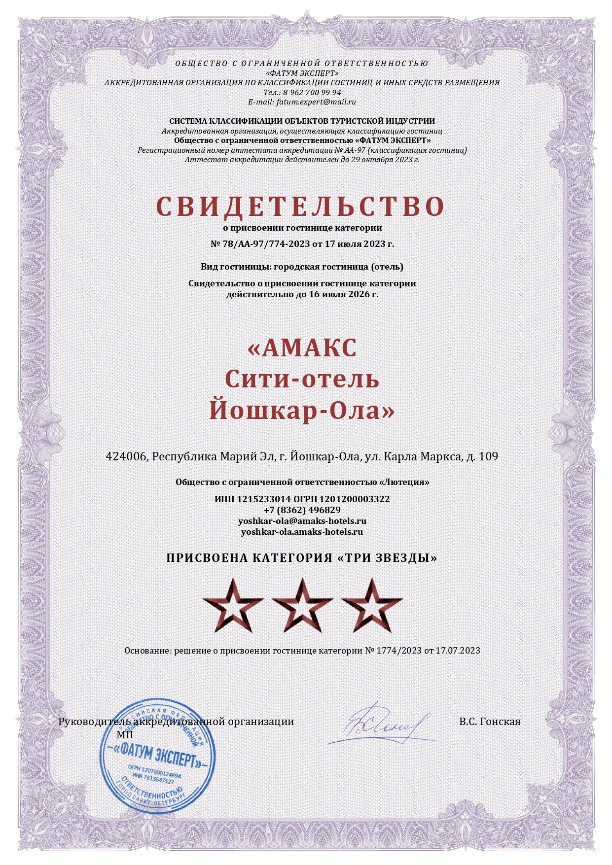 AMAKS City Hotel Yoshkar-Ola is one of the largest hotel complexes in the Republic of Mari El.